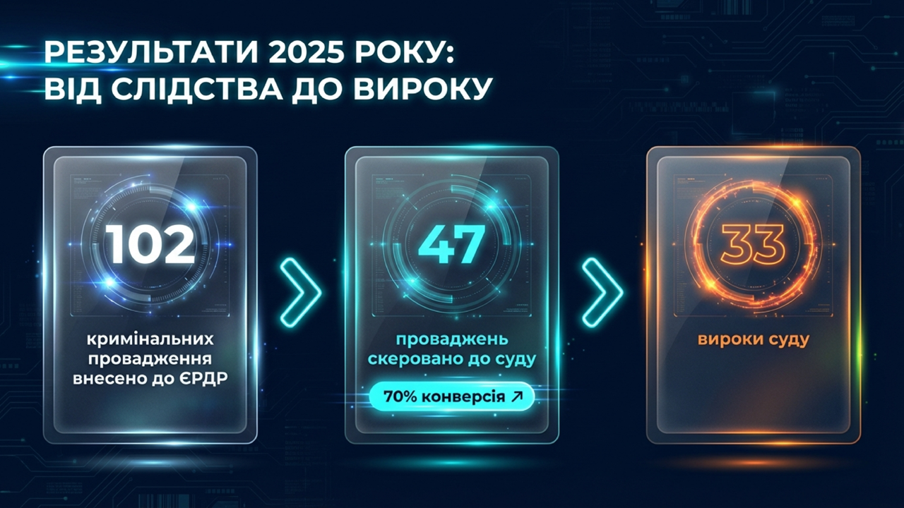 У 2025 році за результатами роботи детективів БЕБ до Єдиного реєстру досудових розслідувань внесено 102 кримінальні провадження, з яких 47 скеровано до суду.