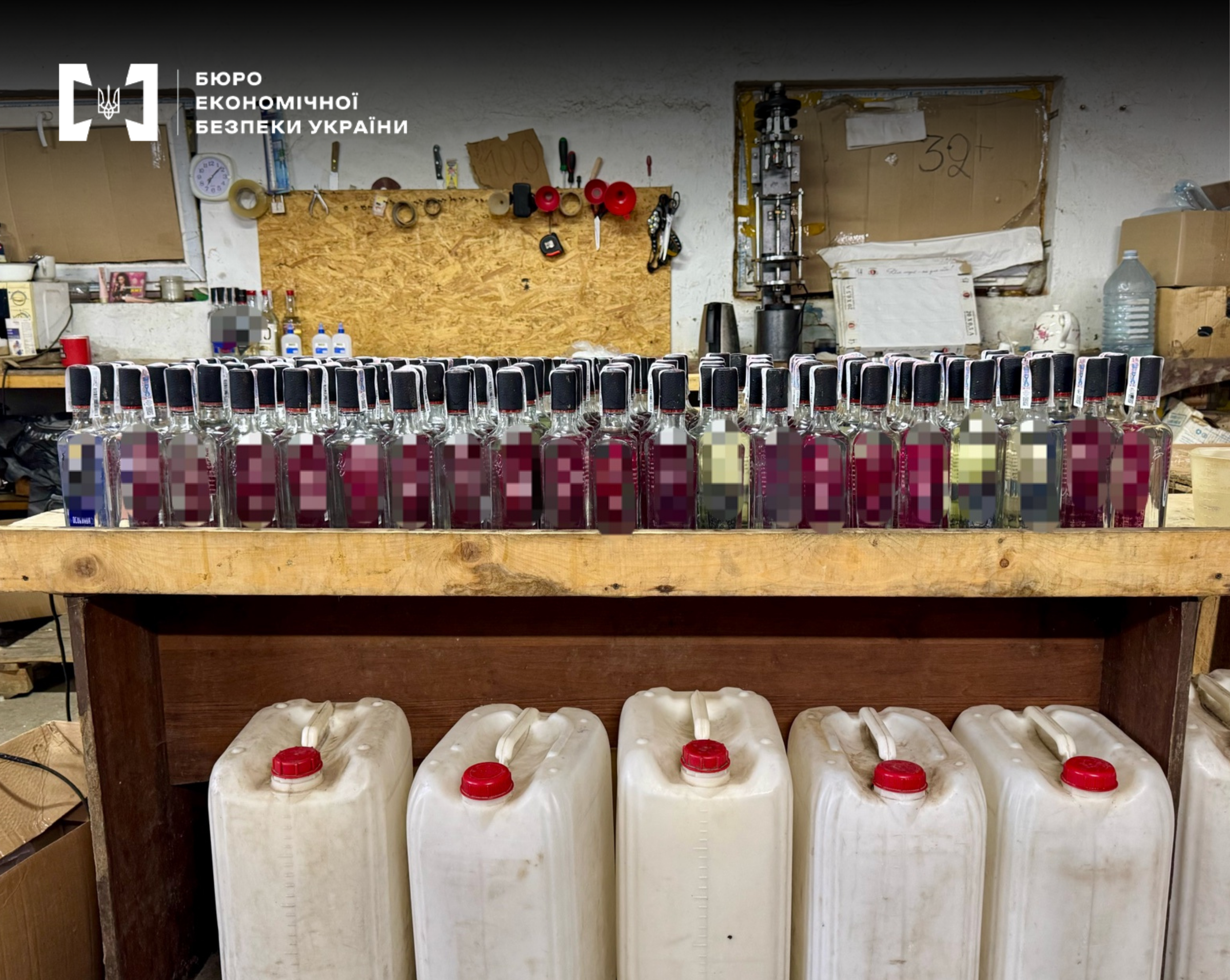Під час проведення санкціонованих обшуків детективи вилучили понад 1,6 тис. літрів спирту етилового, близько 1,1 тис. літрів готових алкогольних напоїв, а також обладнання для розливу, пакувальні матеріали та чорнові записи.